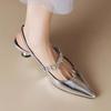 Модные новые черные серебристые босоножки на низком каблуке 2025 женские блестящие с кристальными ремешками босоножки с острым носком женские с ремешком на пятке туфли-лодочки женская обувь