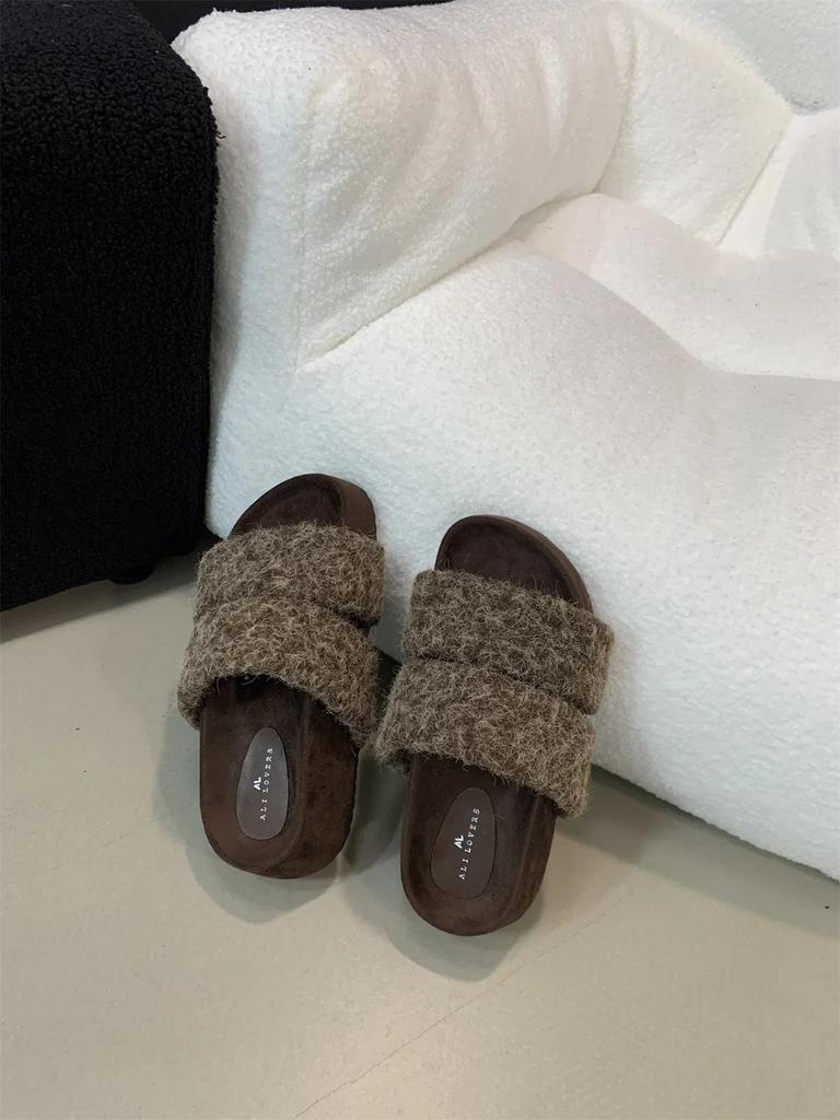 Модные меховые женские слипоны на платформе, зимние дизайнерские новые повседневные туфли для женщин, тренд 2025, домашние хлопковые тапочки, уютные мягкие женские туфли