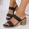 Модные повседневные слипоны с квадратным носком на высоком каблуке, шлепанцы, женские сандалии с этническим плетением, женские летние богемные пляжные шлепанцы для платья 2025