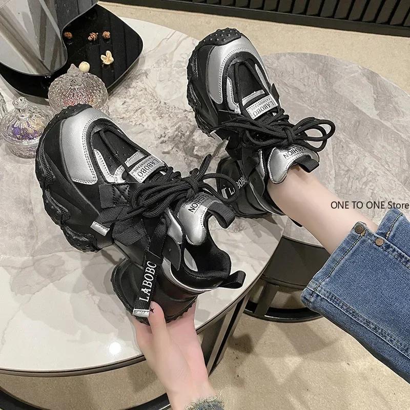 Мода 35-43 Женские Массивные Кроссовки 2024 Дышащая Сетка Платформа Спортивная Обувь Женская Мода На Шнуровке Толстая Подошва Повседневная Обувь Mujer