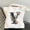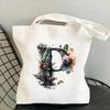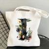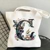 26 Черных Холщовых Сумок-Тоут с Цветами Алфавита для Женщин, Большой Вместимости, Повседневная Новая Сумка для Шопинга с Принтом, Многоразовая Эко-Сумка, Большая — купить товар онлайн с бесплатной доставкой по всему миру!