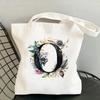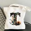 26 Черных Холщовых Сумок-Тоут с Цветами Алфавита для Женщин, Большой Вместимости, Повседневная Новая Сумка для Шопинга с Принтом, Многоразовая Эко-Сумка, Большая