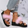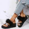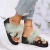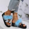 Модные летние шлепанцы с бантом для женщин, повседневные, с меховой отделкой, на танкетке, шлепанцы, женские, для ежедневной носки, износостойкие, с мягкой подошвой, слайды