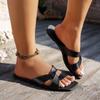 Fashion Plus Size Cross Strap Low Heel Flip Flops Women New Square Toe Clip Toe Slippers Woman Outdoor Slip On Pu Leather Slides Mujer
