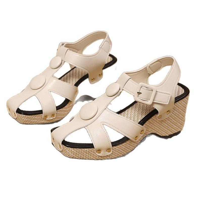 Fashion Women Sandals Summer Buckle Strap Wedge Sandals Brand Designer Chunky Platform Sandals Rivet Thick Sole Gladiator Shoes Woman