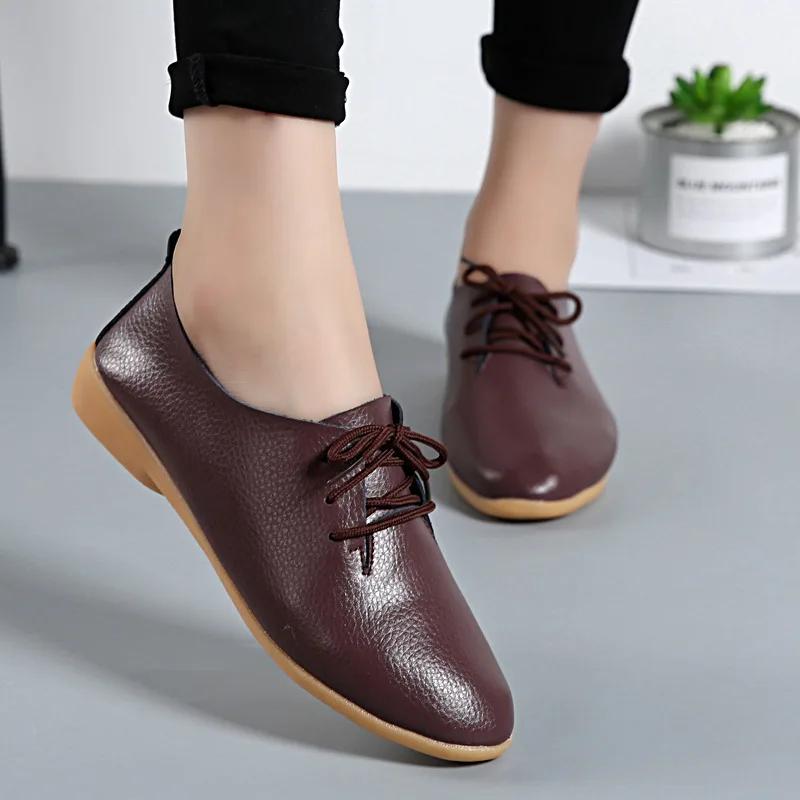 Модные летние лоферы из натуральной кожи Женская повседневная обувь Мокасины Мягкий заостренный носок Женская обувь Женские туфли-балетки Женский размер 44