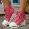 Модные женские ботильоны на толстой подошве, клиновидные парусиновые туфли, новый стиль 2024, простой тренд, повседневная мода, зима, для ходьбы, классика