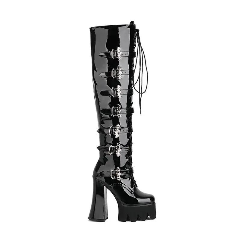 Модные лаковые кожаные женские ботинки женские ботинки толстый каблук ультравысокий каблук маффин панк ПАНК шнуровка спереди высокие ботинки