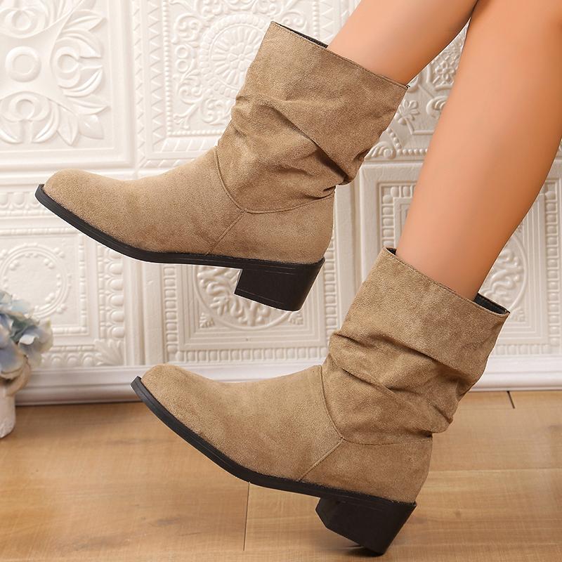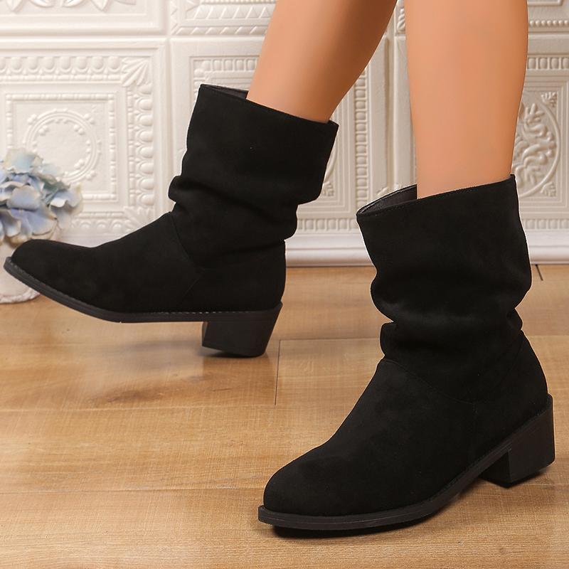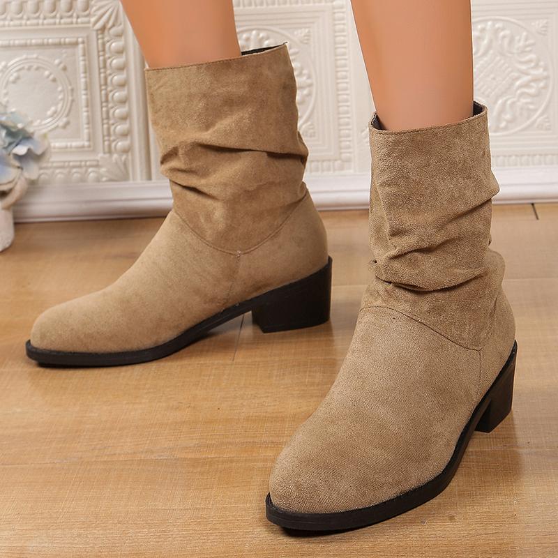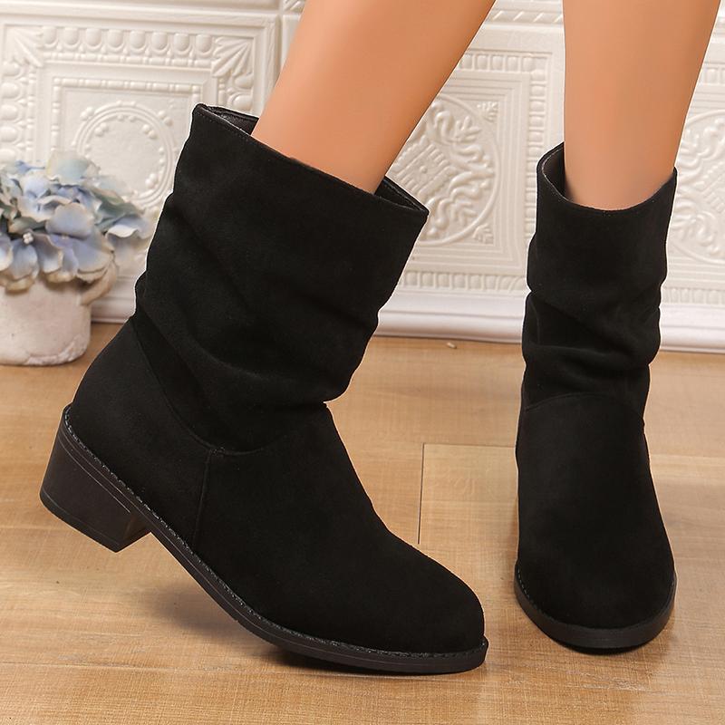 Мода 2025 Слипоны Толстые Каблуки Ботильоны Женские 2025 Большой Размер 35-43 Ботинки из Искусственной Замши Женские Осенне-Зимние Ботильоны на Блочном Каблуке