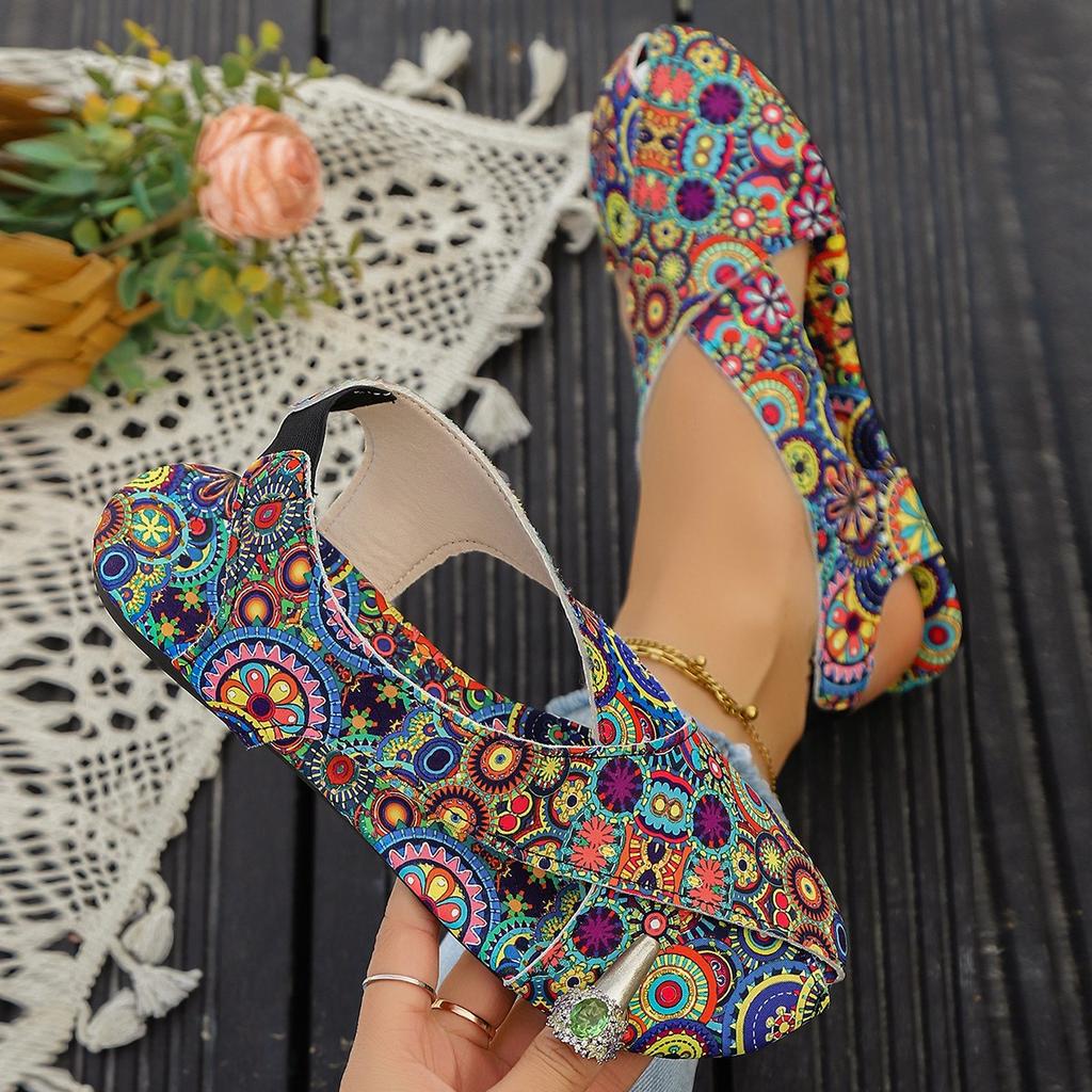 Мода 2025 Лето Новые Плоские С Принтом Кольцо на Палец Ноги Римский Стиль Шлепанцы Женские Трансграничные Большие Размеры Этнические Сандалии Стиль Крутые Шлепанцы Женские