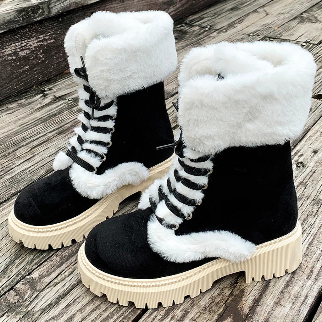Мода 2024 Женские Уличные Прочные Уютные Повседневные Элегантные Зимние Теплые Ботинки на Платформе до Середины Икры Женская Дизайнерская Зимняя Теплая Обувь для Женщин