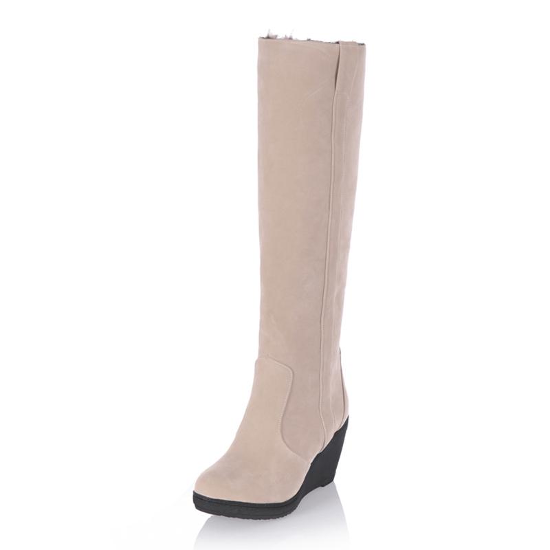 Мода 34-43 Зимние Меховые Сапоги Женские Высокие Каблуки Платформа До Колена Снежные Сапоги Женские Теплые Меховые Туфли на Танкетке Женские