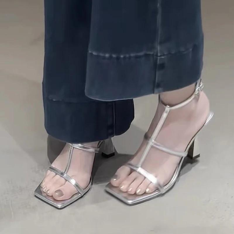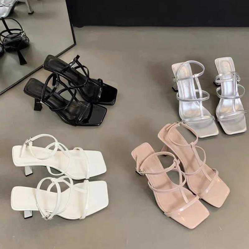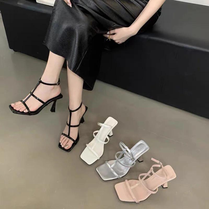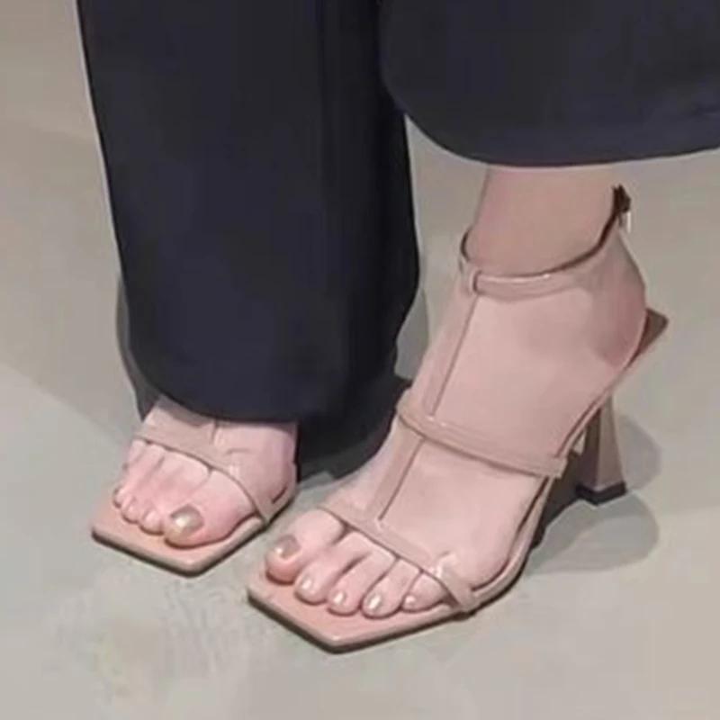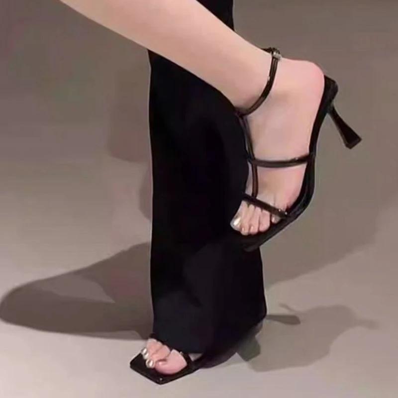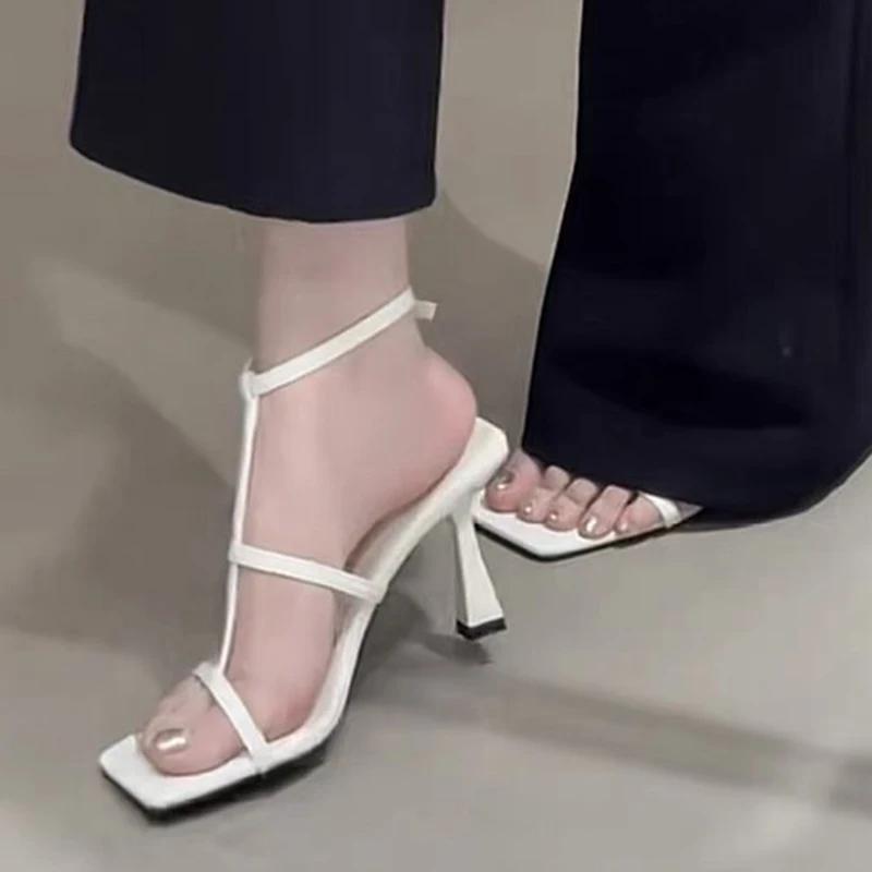 Модные женские сандалии на тонких ремешках с ремешком на щиколотке и пряжкой, роскошные сандалии с квадратным носком и тонким каблуком, женские сандалии на платформе для вечеринок высокого качества