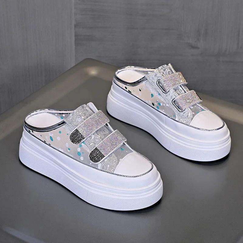 Мода 2025 Новый стиль Домашние тапочки-полушлепки с высоким подъемом Вьетнамки на толстой подошве с закрытым носком Летние модные тапочки для ношения на улице Женские