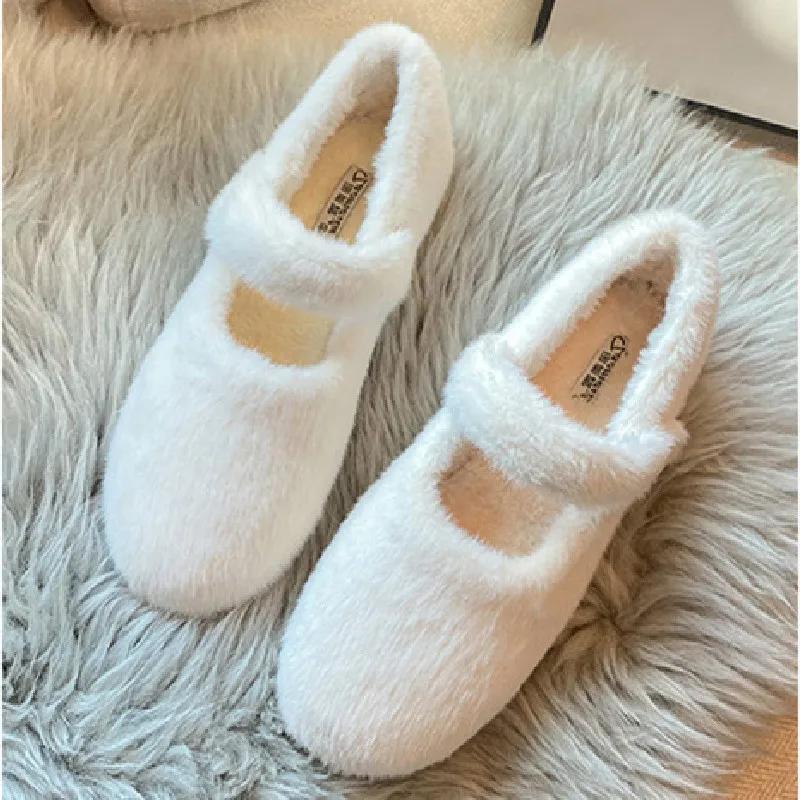 Модные осенне-зимние теплые пушистые туфли на плоской подошве женские удобные с круглым носком Мэри Джейн женские мягкие хлопковые туфли лоферы zapatos de mujer