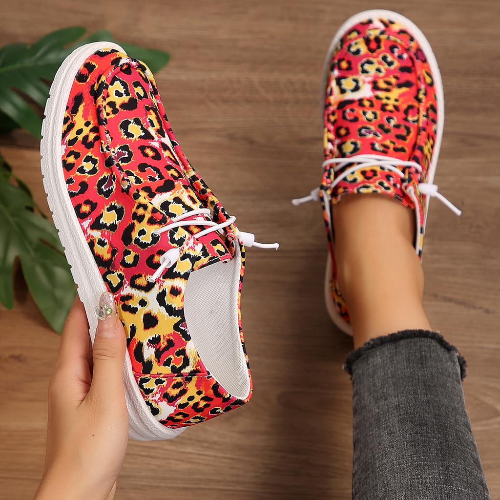 Модные женские плоские кроссовки 2024 весна осень новые уличные парусиновые туфли удобная обувь для ходьбы модные повседневные кроссовки с леопардовым принтом
