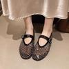 Модные дышащие французские туфли-лодочки с красивыми стразами, новые летние шлепанцы с плоской подошвой и открытым носком для улицы 2025, одинарная обувь
