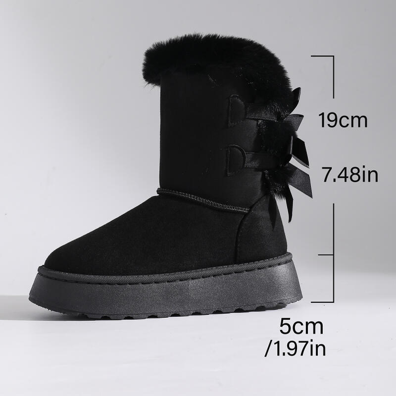 Модные женские пушистые меховые зимние сапоги 2025 зимние мягкие на толстой подошве меховые ботильоны милый бант-лента дизайнерская обувь большие размеры 42