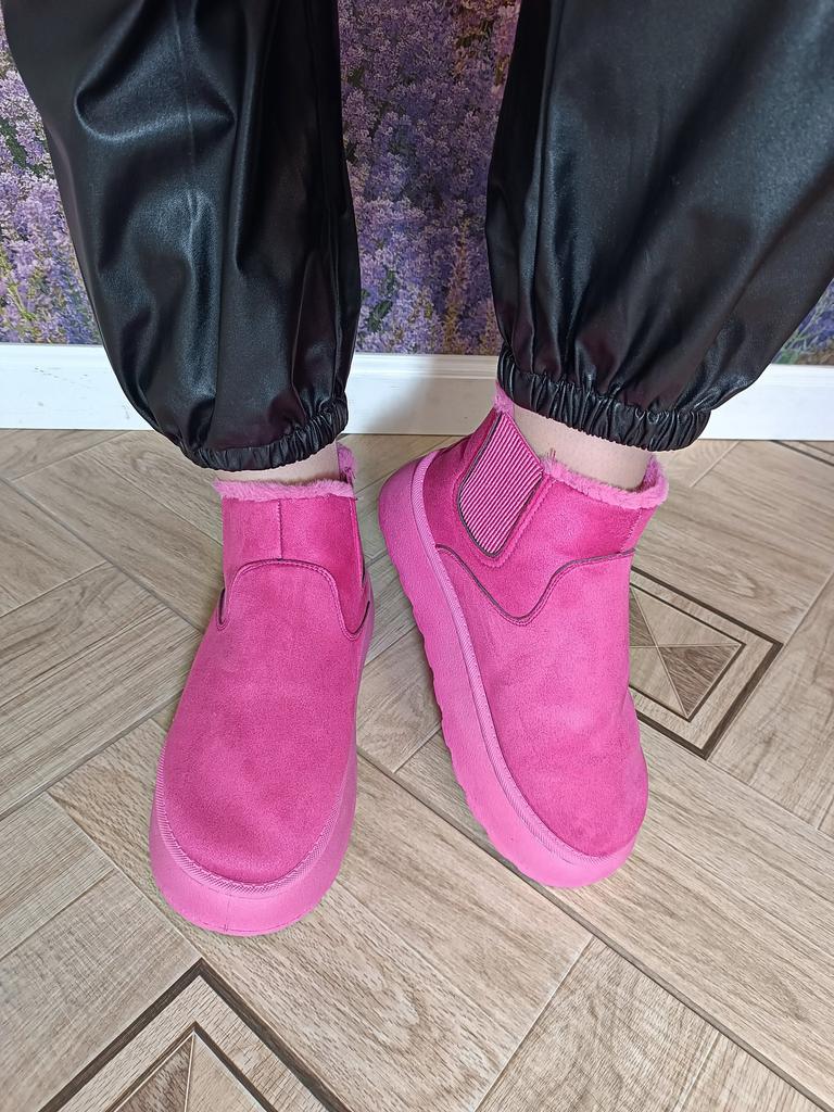 ОБАЛДЕННЫЕ УКОРОЧЕННЫЕ УГГИ🩷 теплые и удобные ✓ Привет 👋 Я не люблю угги, не было их у меня никогда. Но такой формат мне очень понравился. Они лёгкие и теплые. Верхний материал напоминает замшу Подошва толстая, литая, лёгкая. Внутри искусственный мех типа плюш Стелька съёмная, меховая С двух сторон есть вставки из резинки, за счёт неё обувь легко надевается. В них чувствую себя как в комнатных тапочках. А цвет какой 😍 На выбор 6 вариантов, я взяла самые яркие - розово-красные называются у продавца. По факту ярко-розовые🩷 Купила шапку такого же цвета. Теперь могу носить с чем угодно: с синей/черной/коричневой курткой, думаю, даже с зелёной будет хорошо. Не стоит бояться ярких расцветок! Один раз живём 😉 Мне очень поднимает настроение Всегда получаю комплименты и знаки внимания, если надеваю яркие вещи И вам рекомендую. Угги очень классного качества 🔥 Размерный ряд широкий 👍 👣На свою стопу 25,5см выбрала по таблице 41 размер. Подошли идеально. Стелька 25,5см. На широкую ножку тоже подойдут. Рекомендую, отличные, девочки ✅ Всем отличных покупок 👋 #elena_likui #угги #женская_обувь