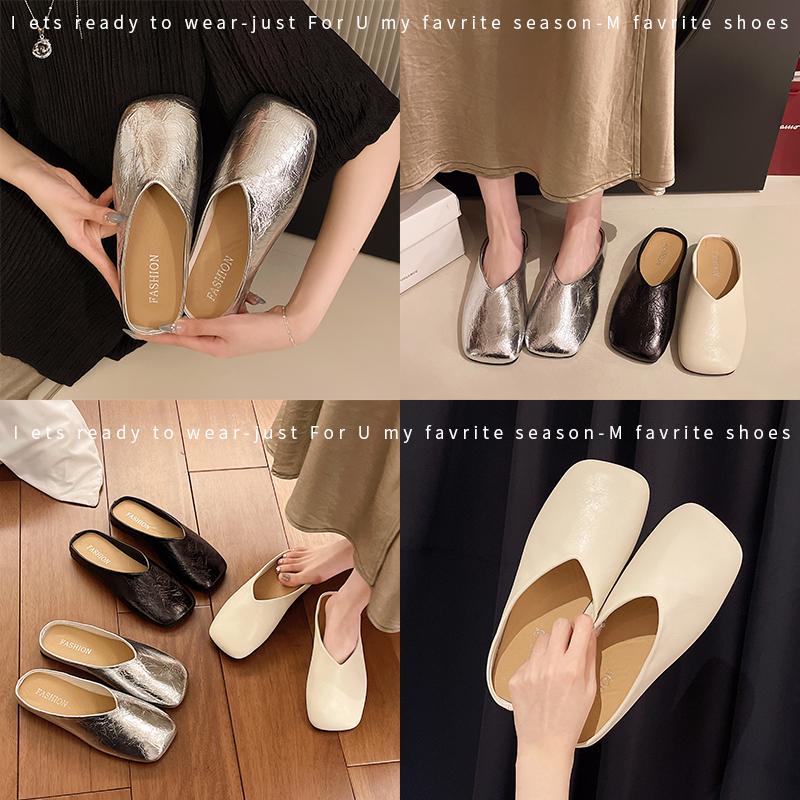 Модные лаконичные мюли с закрытым носком, уличные тапочки для женщин из натуральной кожи, на низком каблуке, летние сандалии, праздничные золотые туфли