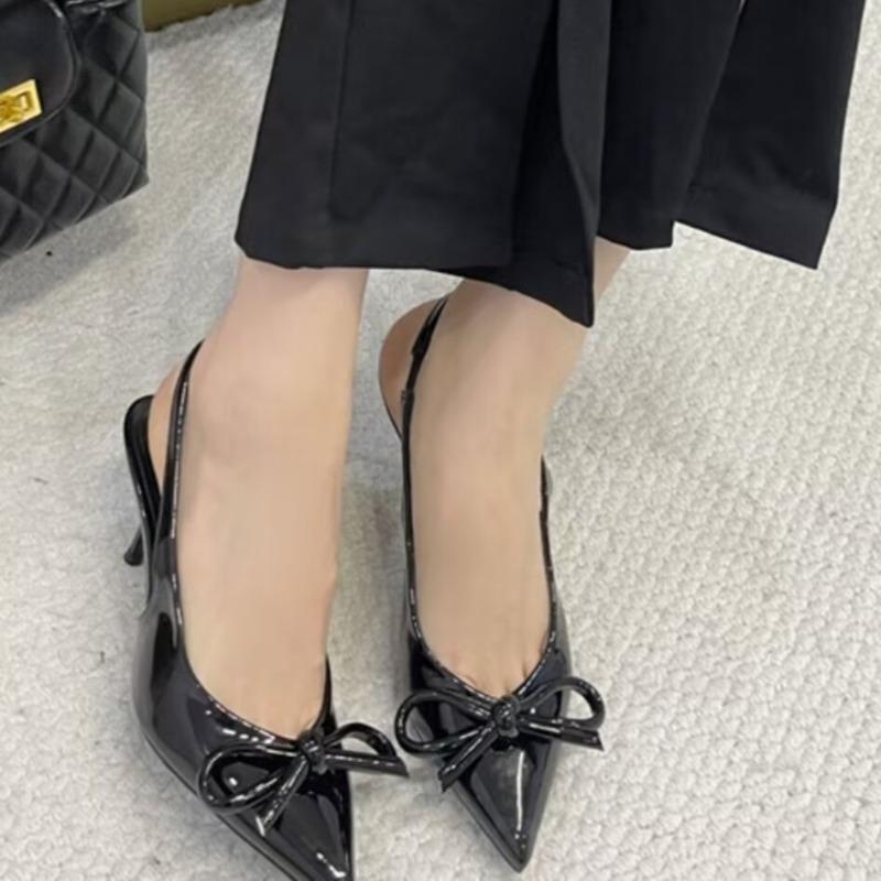 Fashion Women Sandals New Bow Slingbacks High Heels Sandals Women Sexy Pointed Toe Patent Leather Elegant High Heels Shoes for Women