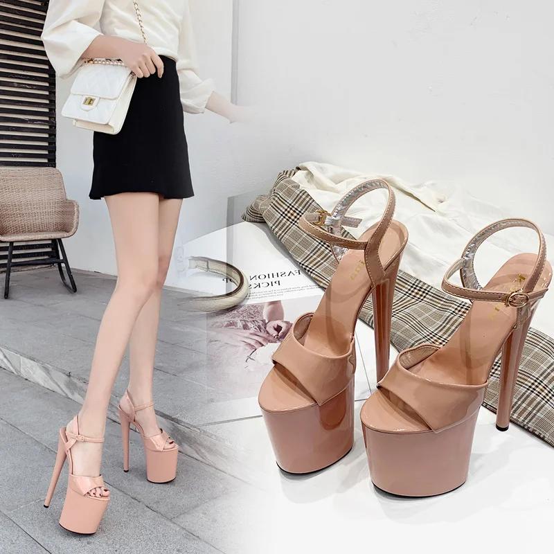 Модные сандалии с рыбьим носком, блестящие прозрачные 20 см, сексуальные туфли на высоком каблуке для танца на пилоне, обувь для подиума и ночного клуба, сандалии женские