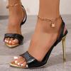 Fashion Classic Super High Heels Sandals Women 2025 Summer Sexy Black Nightclub Thin Metal Heels Shoes Pointed Toe Ankle Sandals Woman