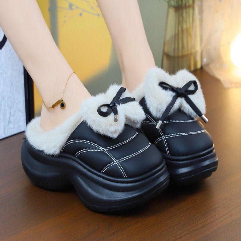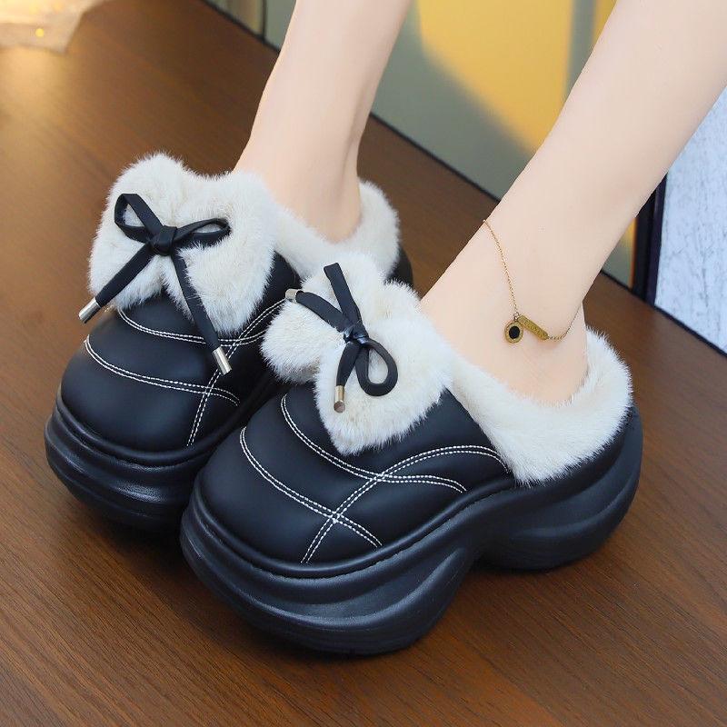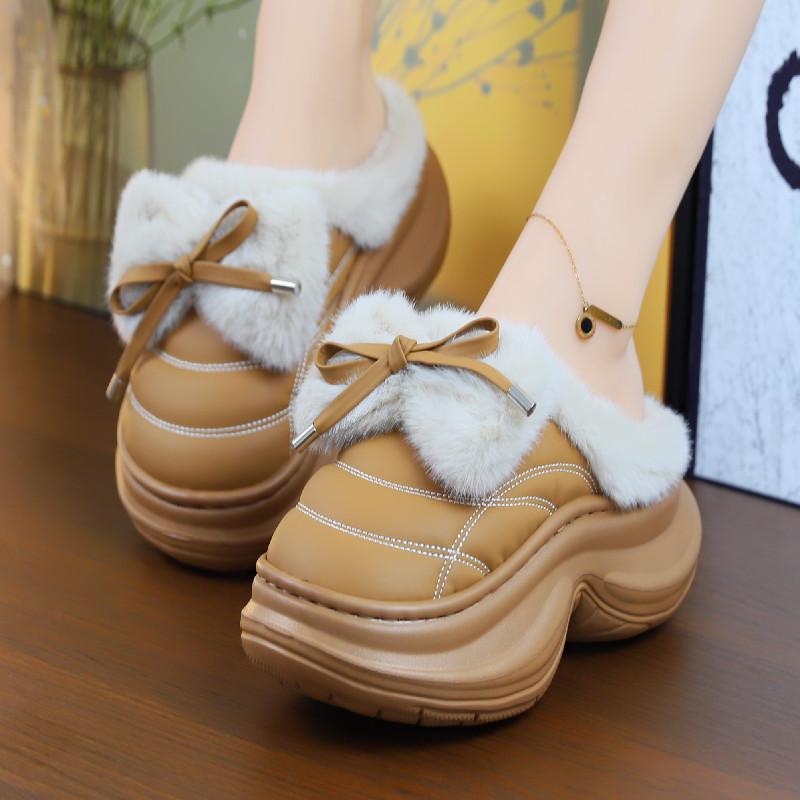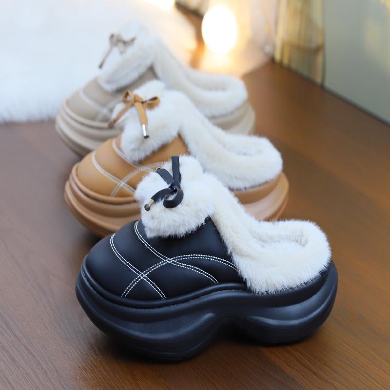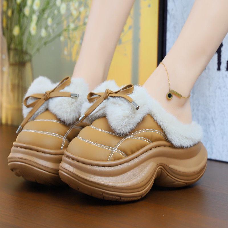 Новые модные зимние тапочки на высоком каблуке, сабо, теплая женская обувь на платформе, домашние и уличные тапочки, модные женские меховые мюли, плюшевые тапочки