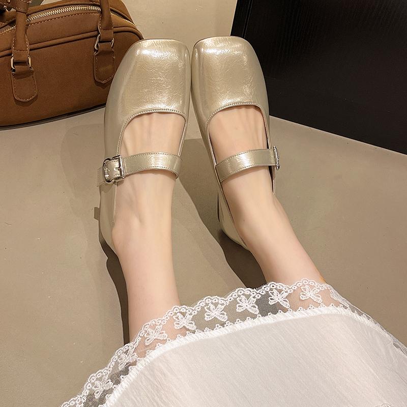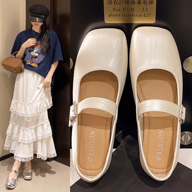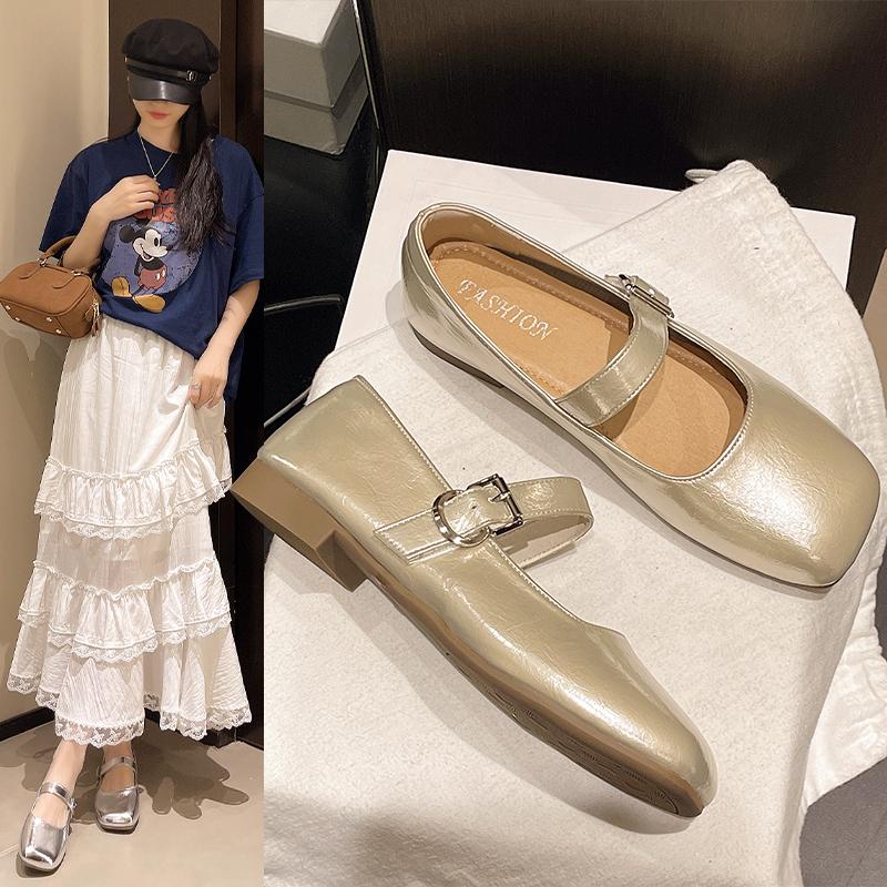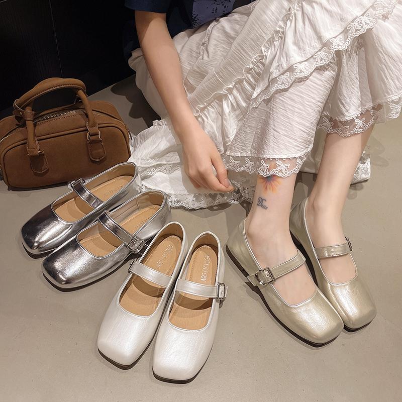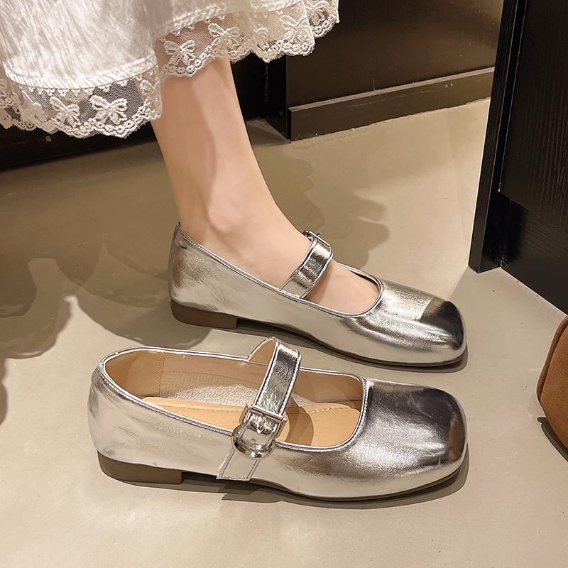 Модные неглубокие плоские серебристые туфли-одинарки Осень 2025 Новые женские туфли Мэри Джейн Летние балетки