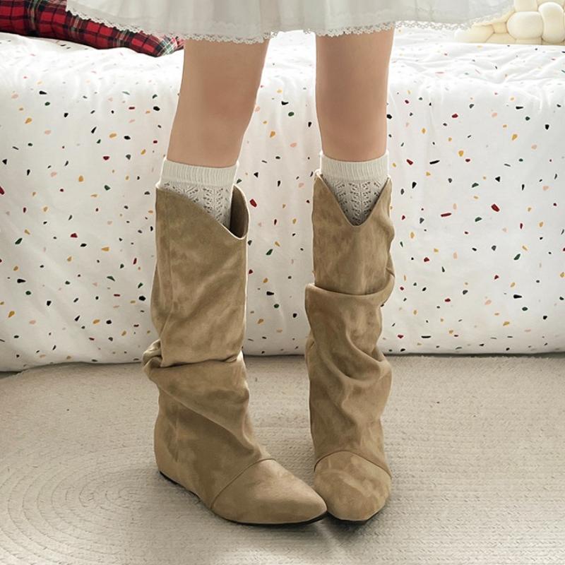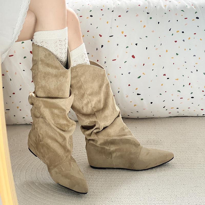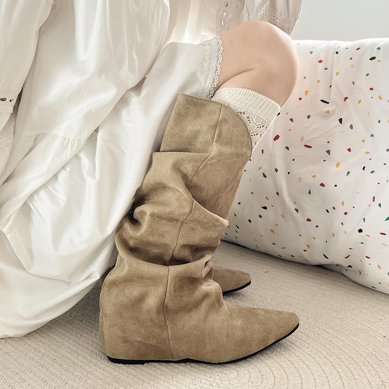 Модные осенне-зимние плиссированные женские полусапоги Модные слипоны Обувь на внутренней платформе Уличный стиль Банкетная вечеринка Короткие ботильоны Женские