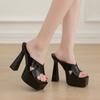 Мода 2024 Лето Новые Шлепанцы на Платформе для Женщин Обувь Сексуальный Квадратный Носок Широкая Перекрестная Лента Толстый Высокий Каблук Современные Сандалии Вьетнамки