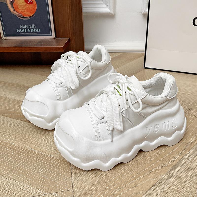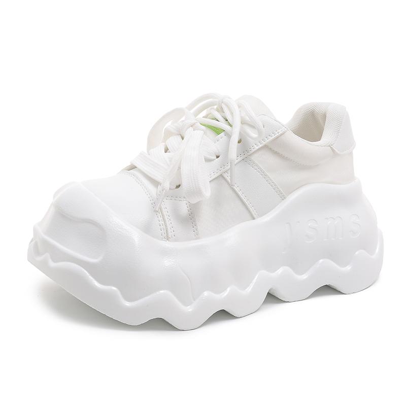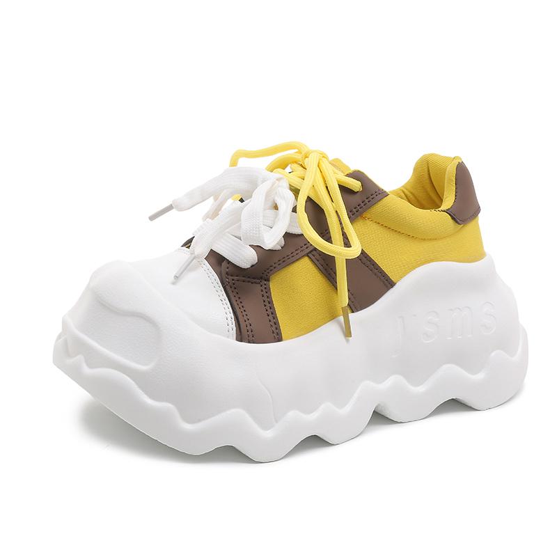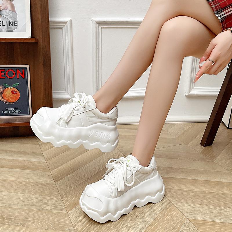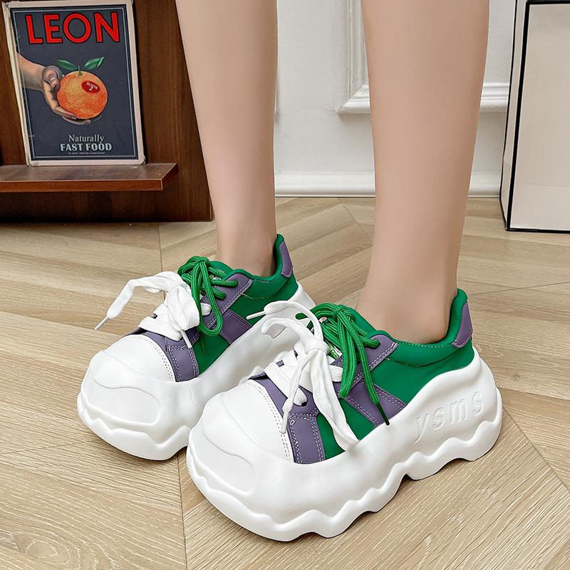 Модная женская обувь на платформе из натуральной кожи, туфли с большой головой на шнуровке, смешанные цвета, массивные кроссовки, повседневная толстая подошва 8,5 см, обувь для ходьбы на доске