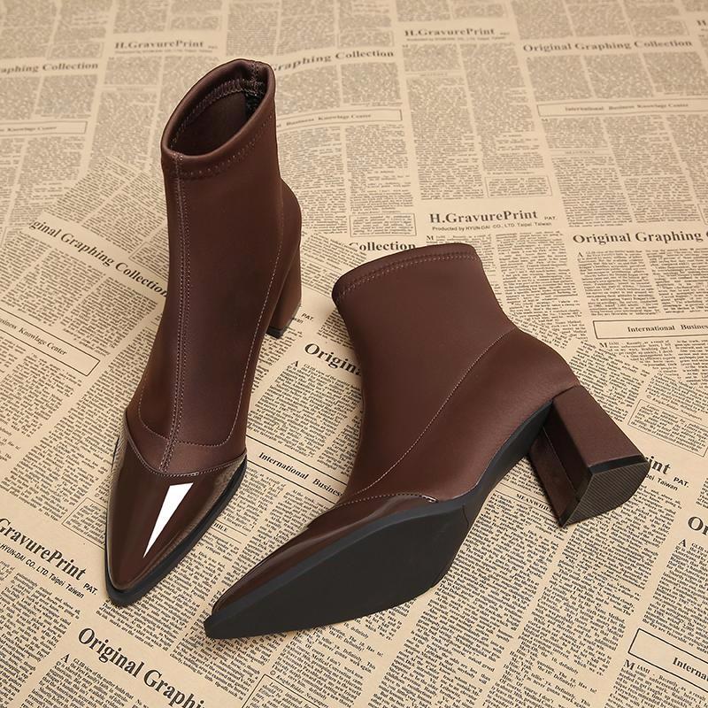 Модные осенне-зимние женские ботильоны с острым носком, на молнии, с квадратным каблуком, короткие