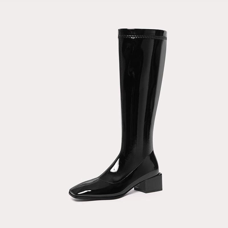 Модные женские рыцарские сапоги до колена из лакированной кожи, модная обувь на толстом каблуке, женские длинные ботильоны, осенне-зимняя женская обувь