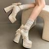 Модные туфли на высокой платформе и высоком каблуке для женщин, туфли Лолиты, модные туфли с мелким бантом, женские туфли-лодочки с перекрестными ремешками для вечеринки