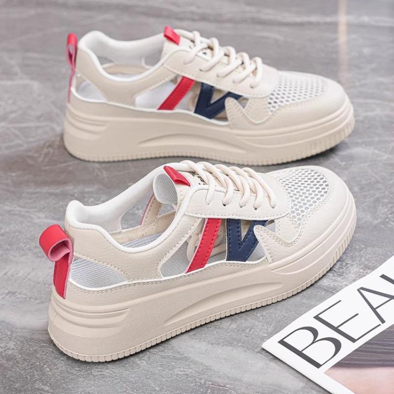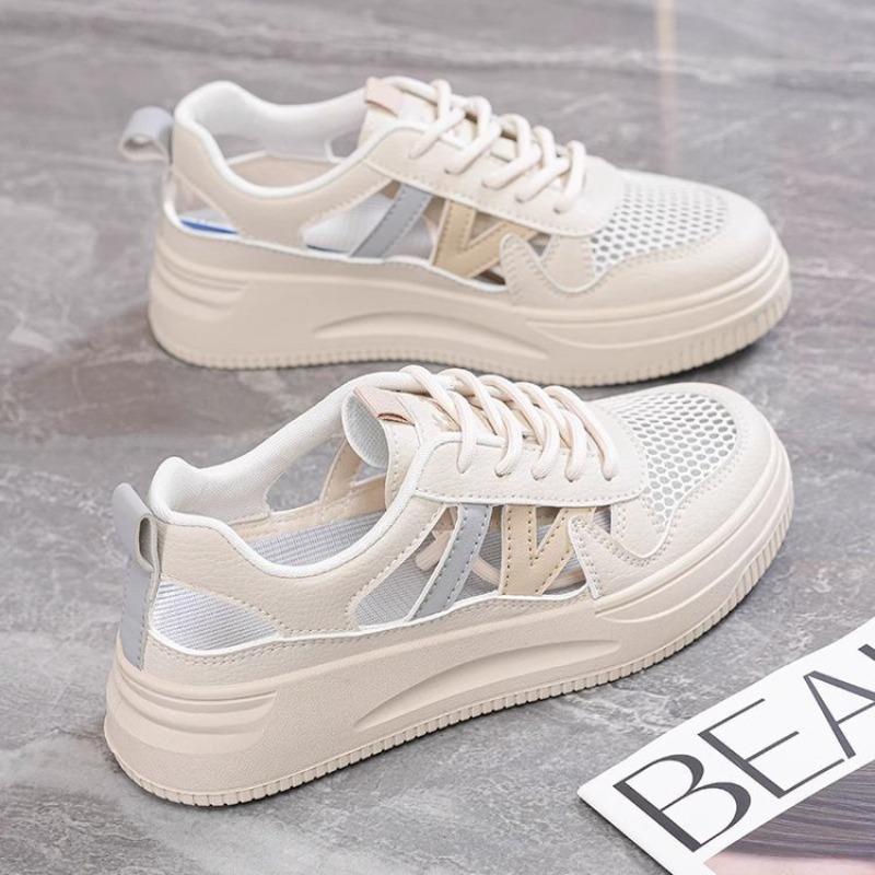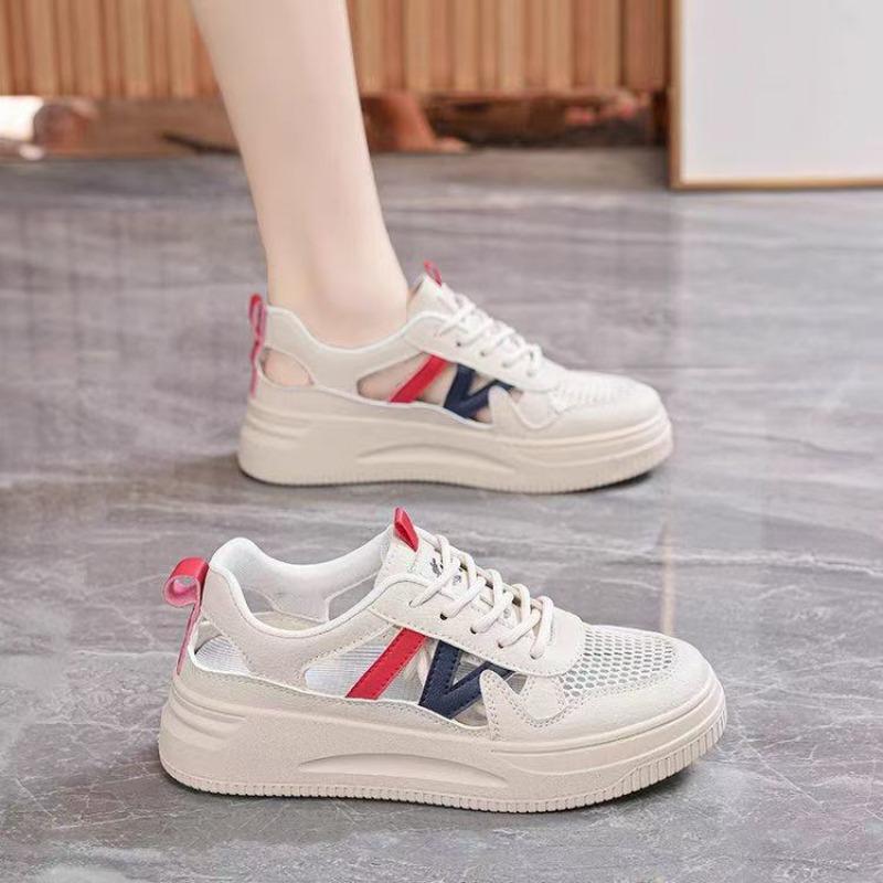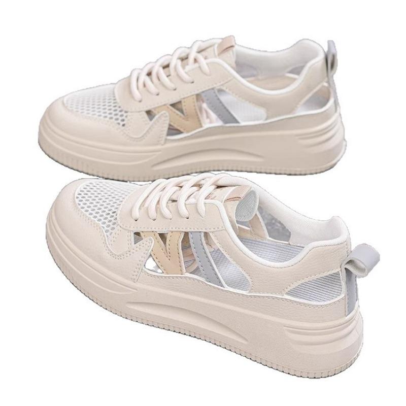 Женские туфли-одинарки новые летние для улицы толстая подошва мягкая подошва не устают ноги шнуровка износостойкие полые спортивные белые туфли
