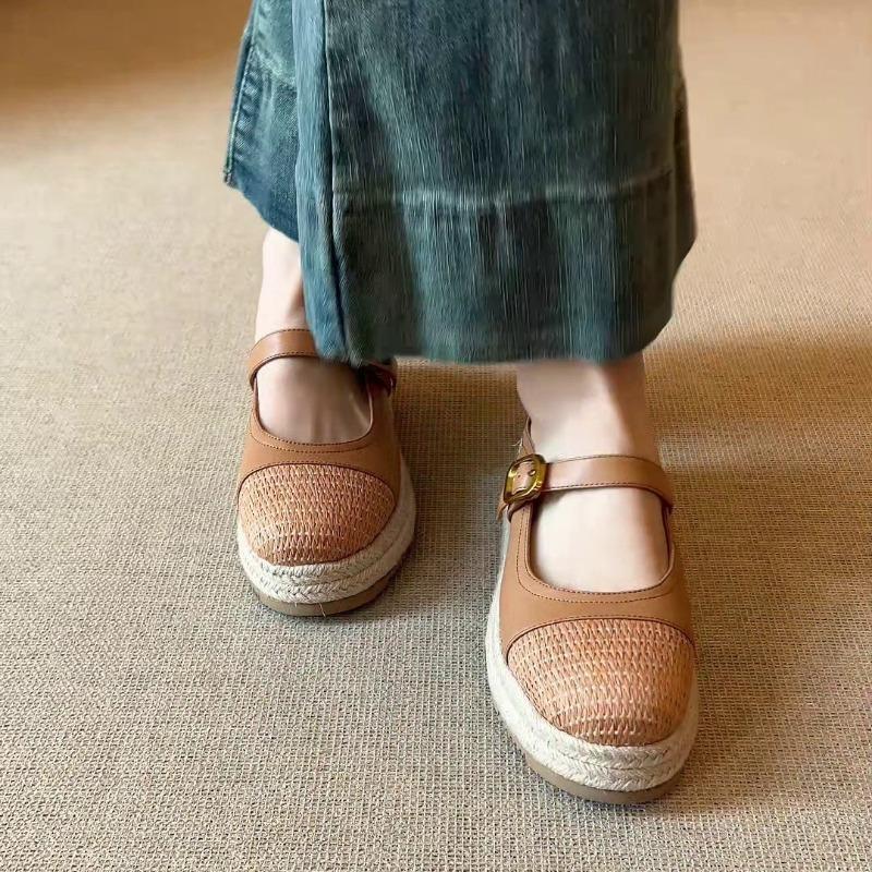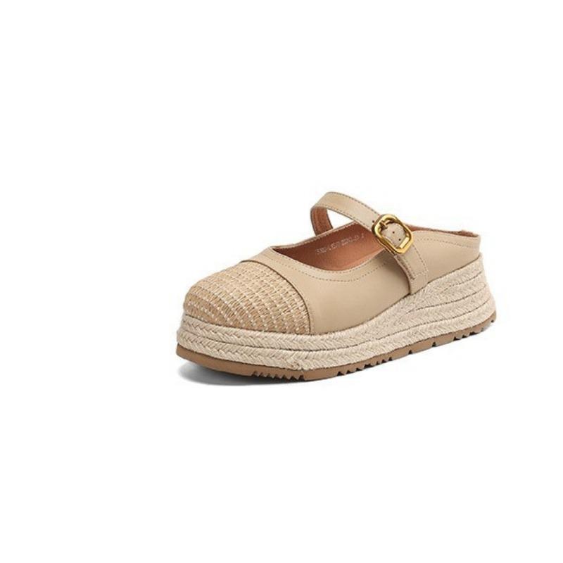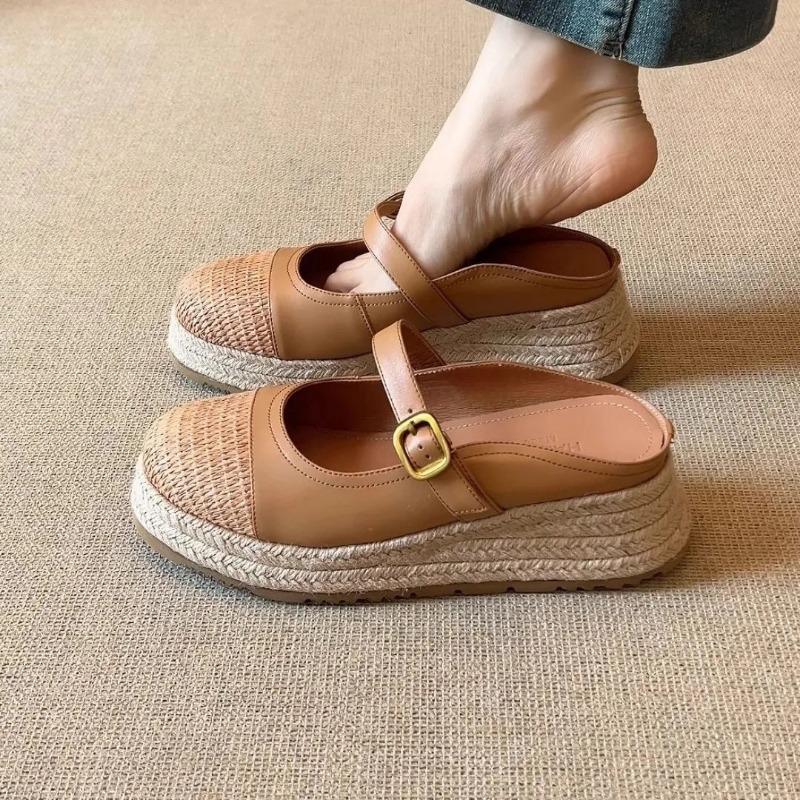 Maillard~ Тканые шлепанцы на танкетке с плетеными вставками, женские, с закрытым носком, летние, в стиле ретро, на толстой соломенной подошве, крутые шлепанцы