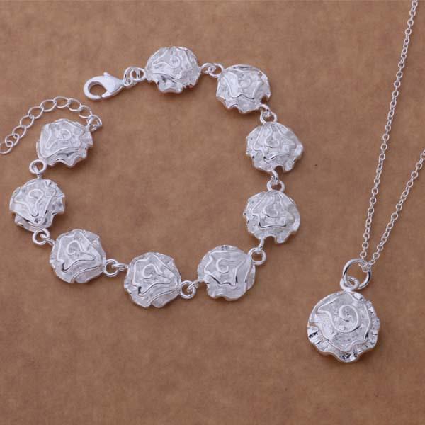 Посеребренный набор украшений из стерлингового серебра 925 пробы в виде розы - браслет и ожерелье в европейском и американском стиле