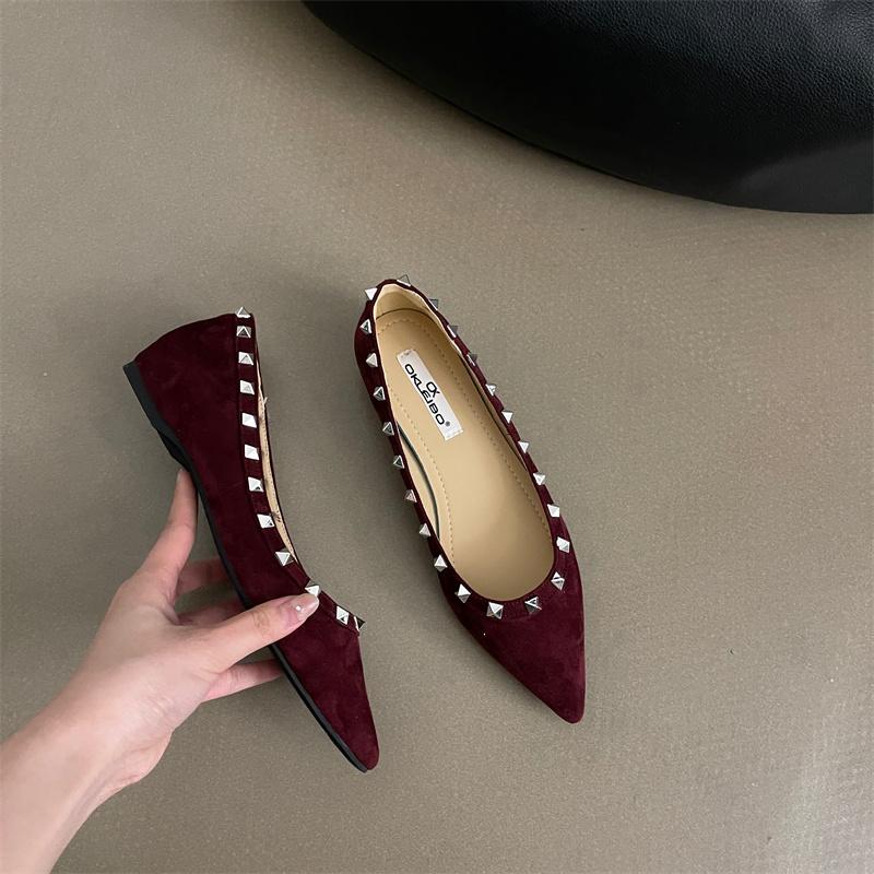 Модная женская обувь на плоской подошве с заклепками и острым носком в французском стиле, новая коллекция весна/лето 2025, красная свадебная женская обувь, Zapatillas Mujer