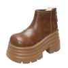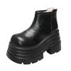 Мода 10 см Новые женские зимние массивные ботильоны, снежные ботинки на высокой платформе, меховая обувь на танкетке, плюшевые теплые короткие ботинки, кожаные челси ботинки