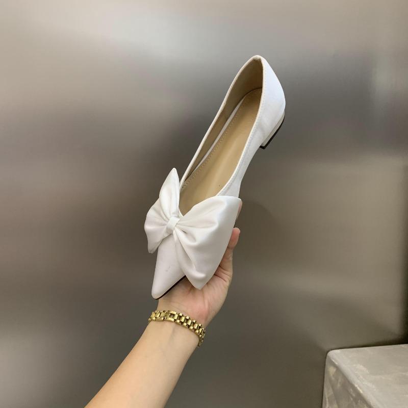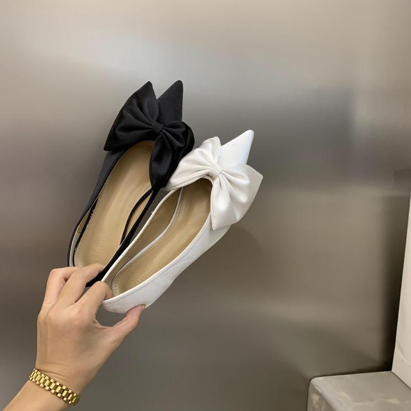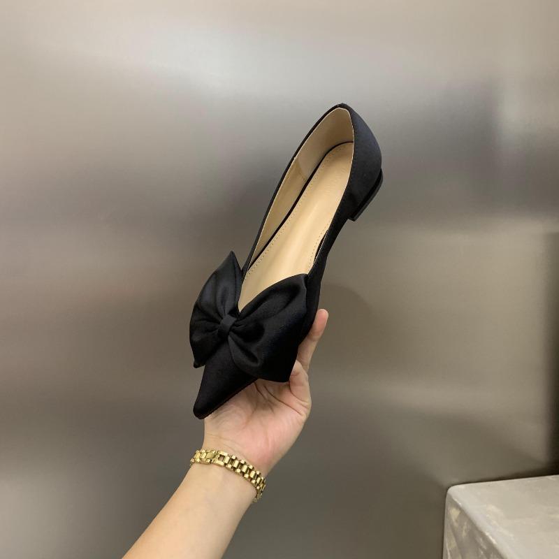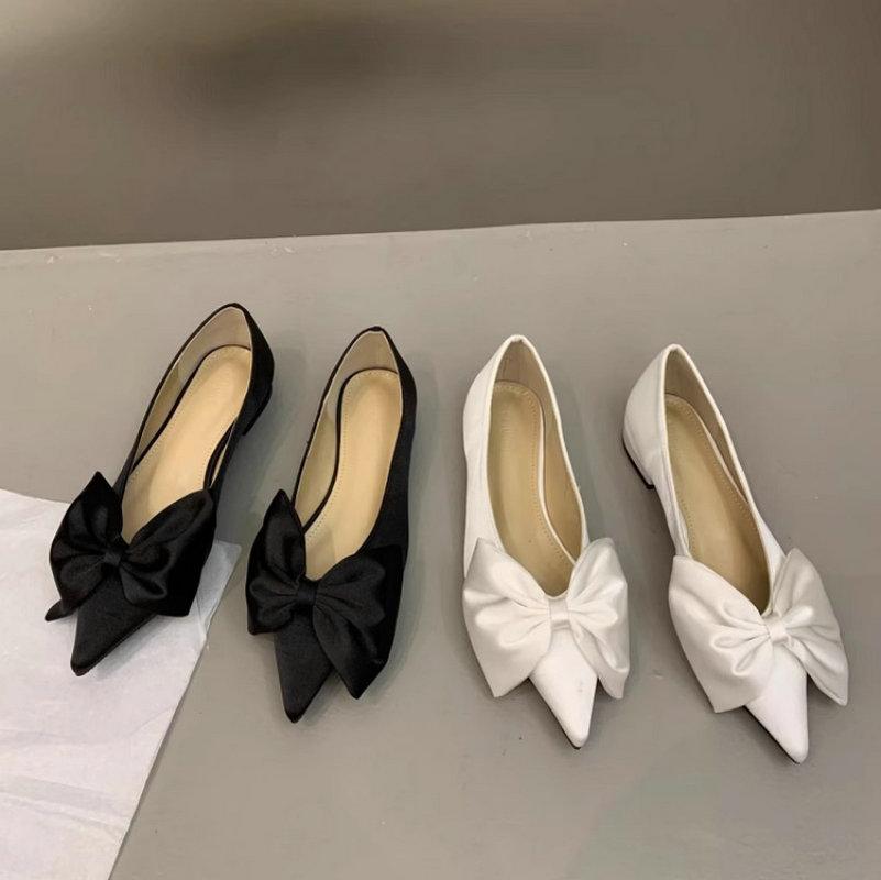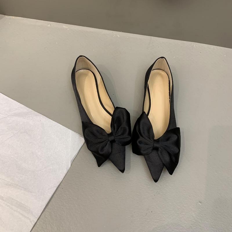 Модная женская обувь на плоской подошве больших размеров 43 44 Весна Осень Новый стиль Острый носок Бант Черные женские туфли Лоферы Женская обувь