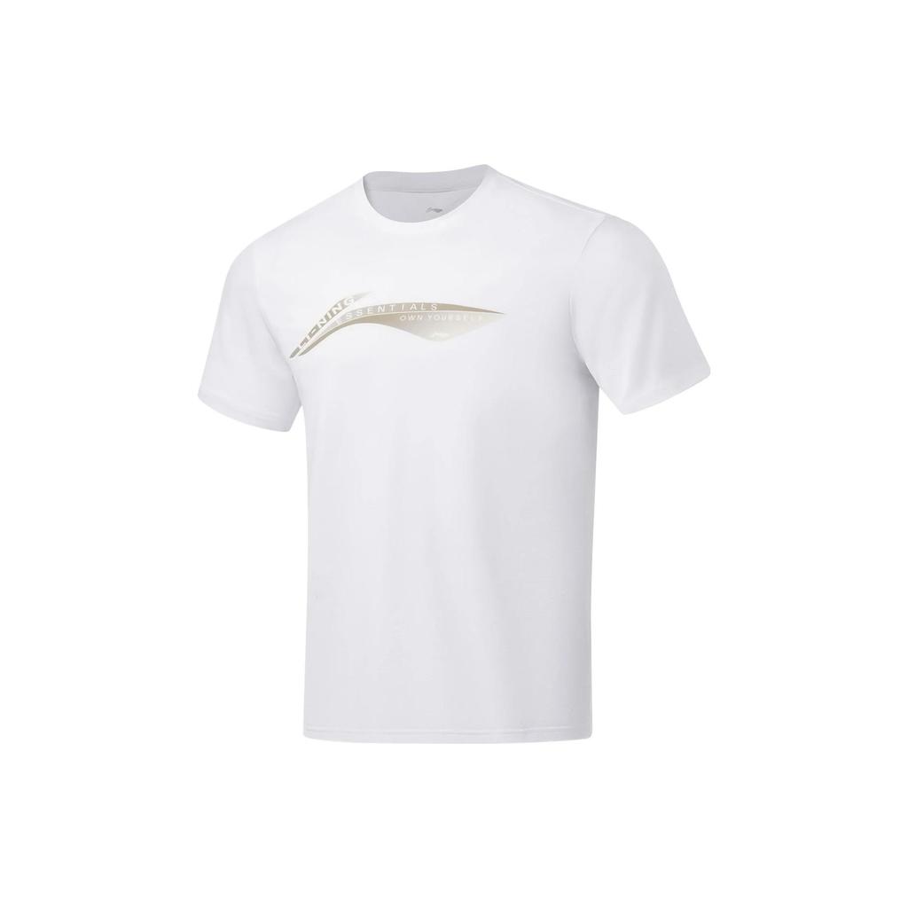 Li-Ning Футболка с короткими рукавами и принтом из серии Fitness Series, мужские топы белого цвета с круглым вырезом и короткими рукавами ATST101-2