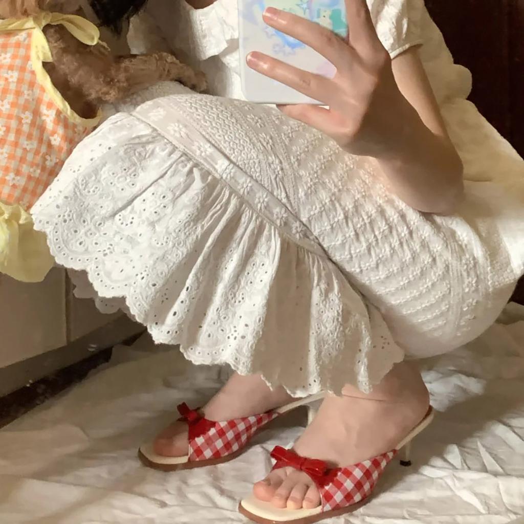 Fashion Summer slippers for women Square toe French checkered sandals for women wearing butterfly condensation toe high-heeled sandals