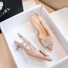 Модные французские сандалии для женщин Лето 2025 Бриллиантовый острый носок Тонкий высокий каблук Женская обувь Большой размер Женские сандалии 41 42 43