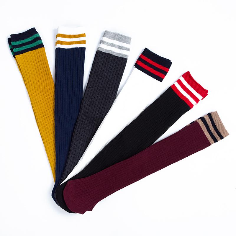 Сезонные детские полосатые вязаные хлопковые гольфы до колена для девочек 2020