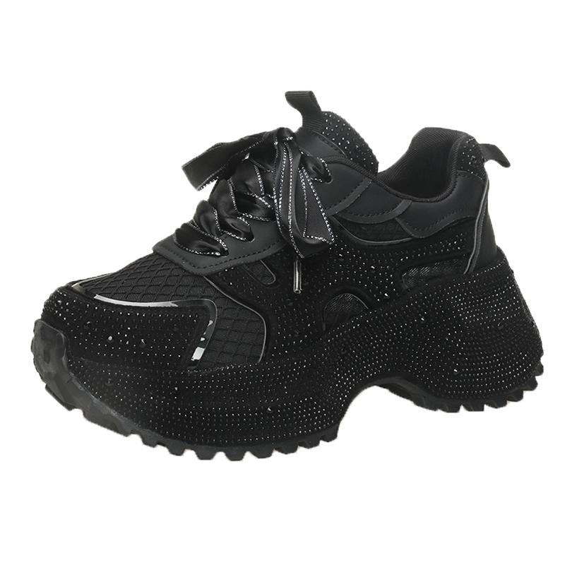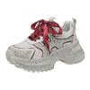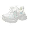 Мода 7см Летние Роскошные Дизайнерские Женские Кроссовки Daddy со Стразами Толстая Подошва Сетка Розовые Милые Женские Тенниски на Платформе Весна