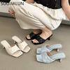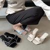 Fashion SUOJIALUN 2025 Summer New Women Slipper Fashion Square Toe Slip On Ladies Elegant Sandal Square High Heel Dress Slides Shoes