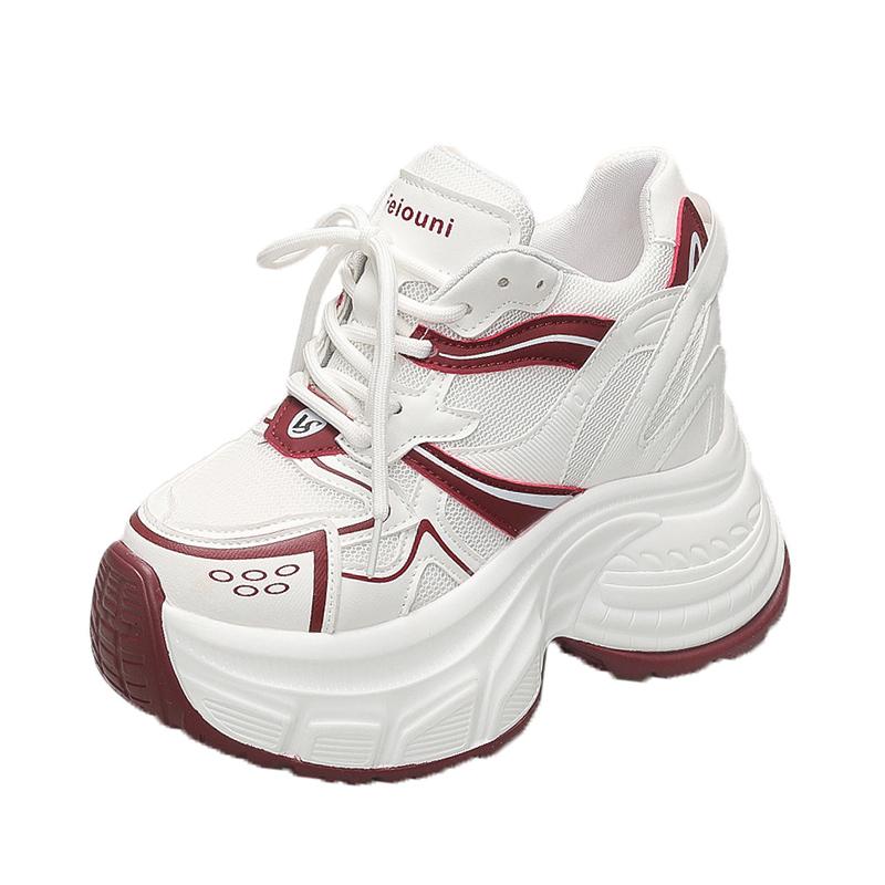 Мода 10 см Синтетическая воздушная сетка Натуральная кожа Вулканизированные Массивные Кроссовки Лето Осень Досуг Весна Женские Туфли-лодочки на платформе и танкетке