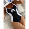 Женский сексуальный контрастный черно-белый купальник-триангл без спины - Съемный нагрудный вкладыш, Высокоэластичный купальник с полной посадкой