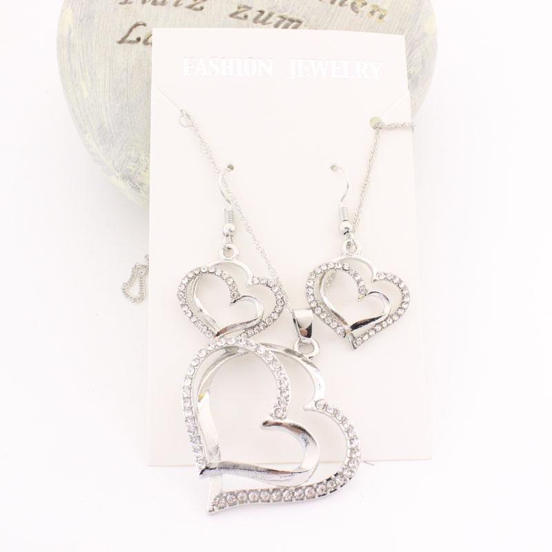 Новый европейский и американский стиль, набор ожерелья и серег с двойным сердцем из страз